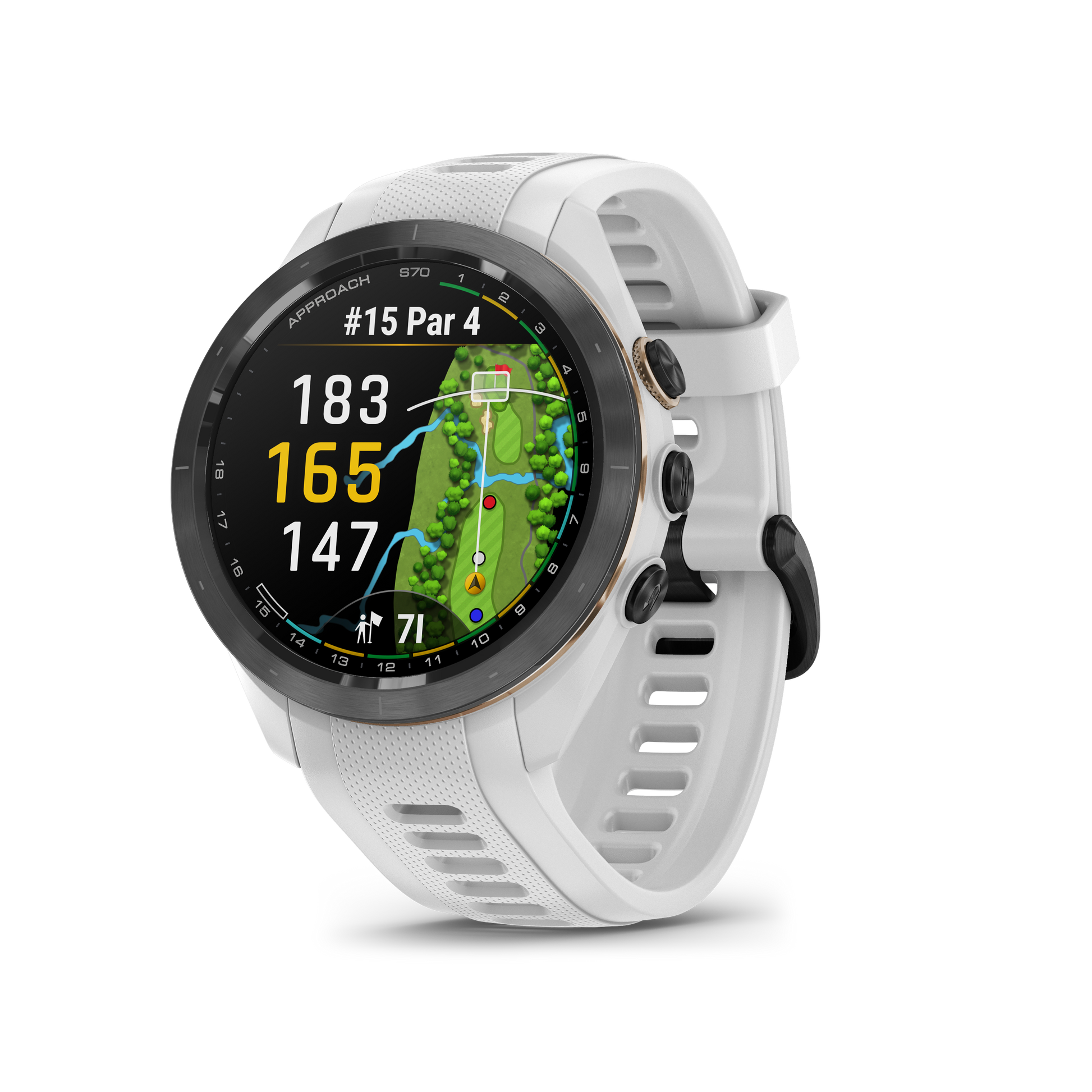 If golf is your world, Approach® S70 is your watch. Featuring a stunning 1.2” AMOLED display, this smaller-sized premium smartwatch brings more than 43,000 courses to life and features all the on-course tools you need to lower your handicap. The improved virtual caddie feature provides a recommended club based on your shot dispersion data, elevation and more. An enhanced PlaysLike Distance feature utilizes a built-in barometer, so you’ll know how far each shot is playing. And on your way to the hole, preloaded green contour data gives you insights into slope direction of the green (with an active Garmin Golf™ app membership). The slim, stylish design looks great on and off the course, with features that support your training — and lifestyle — including strength, yoga and running. Also get heart rate and advanced sleep monitoring for an extra edge when you’re on the course (data presented is intended to be a close estimation of metrics tracked). With up to 10 days of battery life in smartwatch mode and 15 hours in GPS mode, you’ll always have time for another round.
