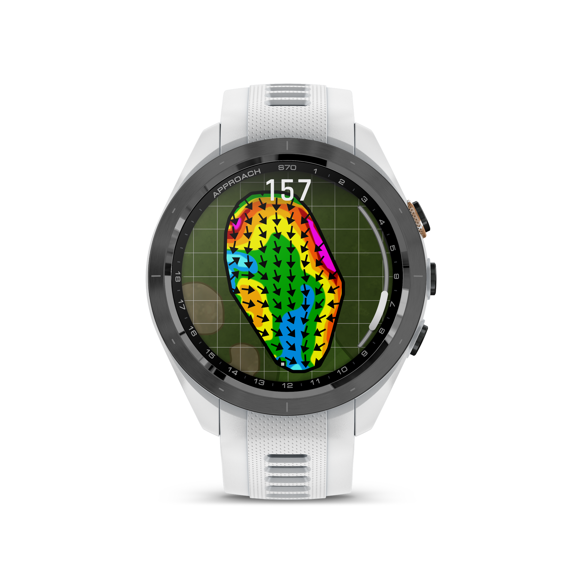 -Plan the best approach shot, and sink the putt with green contour data — which shows you the green’s slope direction and severity on select courses (available with an active Garmin Golf™ app membership)