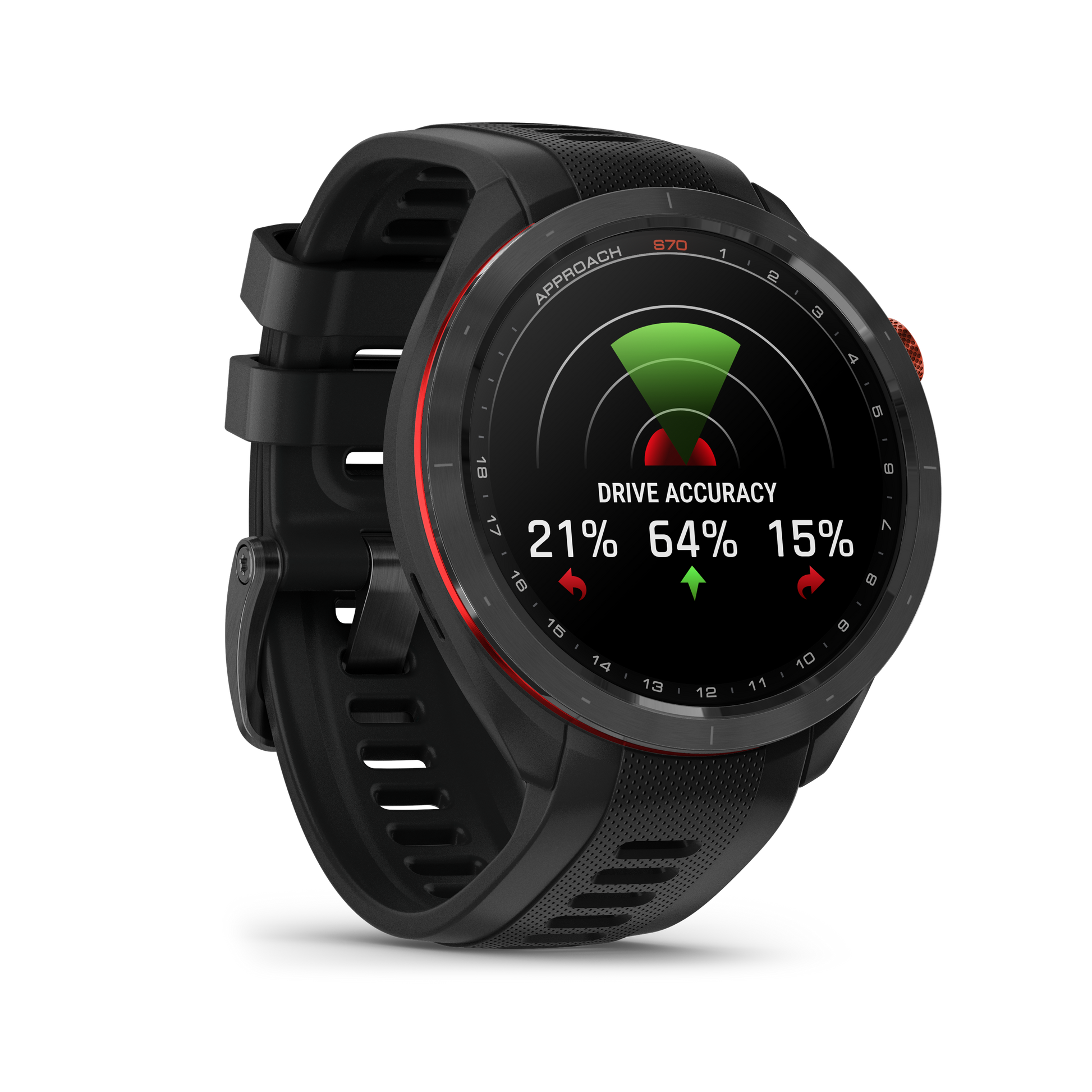 If golf is your world, Approach® S70 is your watch. Featuring a stunning 1.4” AMOLED display, this premium smartwatch brings more than 43,000 courses to life and features all the tools you need to lower your handicap. The improved virtual caddie feature provides a recommended club based on your shot dispersion data, elevation and more. An enhanced PlaysLike Distance feature utilizes a built-in barometer, so you’ll know how far each shot is playing. And on your way to the hole, preloaded green contour data gives you insights into slope direction of the green (with an active Garmin Golf™ app membership). The slim, stylish design looks great on and off the course, with features that support your training — and lifestyle — including strength, yoga and running activities. Also get heart rate and advanced sleep monitoring for an extra edge when you’re on the course (data presented is intended to be a close estimation of metrics tracked). With up to 16 days of battery life in smartwatch mode and 20 hours in GPS mode, you’ll always have time for another round.