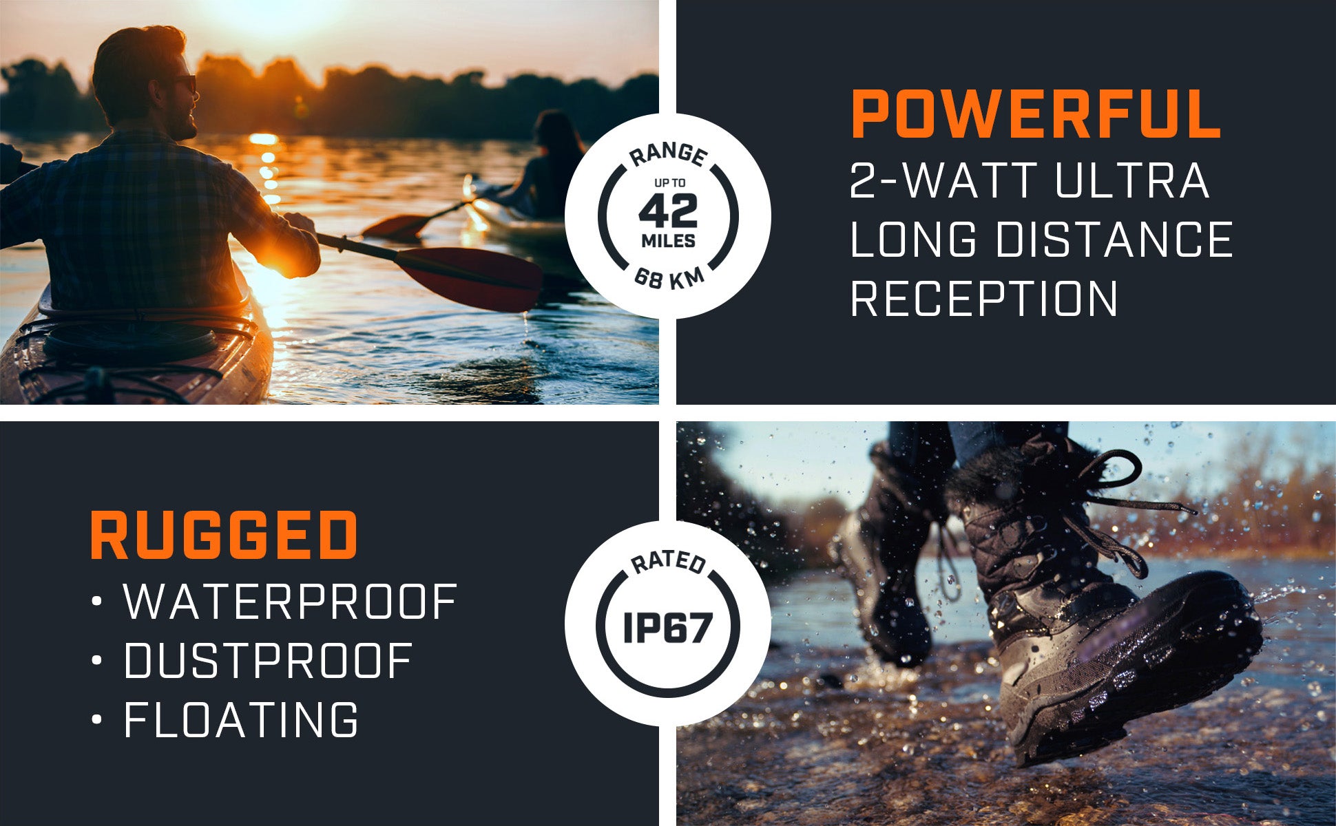 -ULTRA CLEAR LONG DISTANCE RECEPTION: Two watts of power provides up to 68 kilometers/ 42 Miles of range.