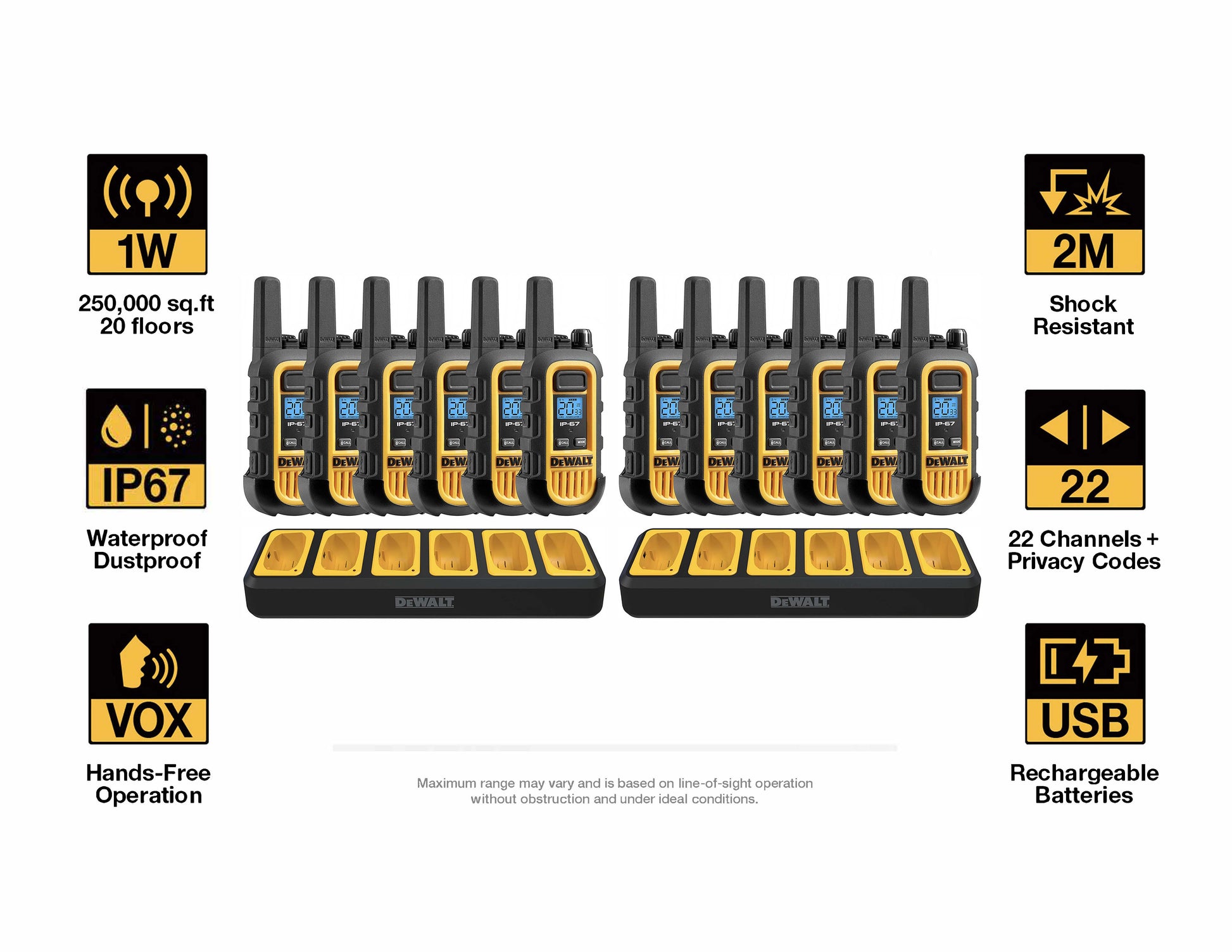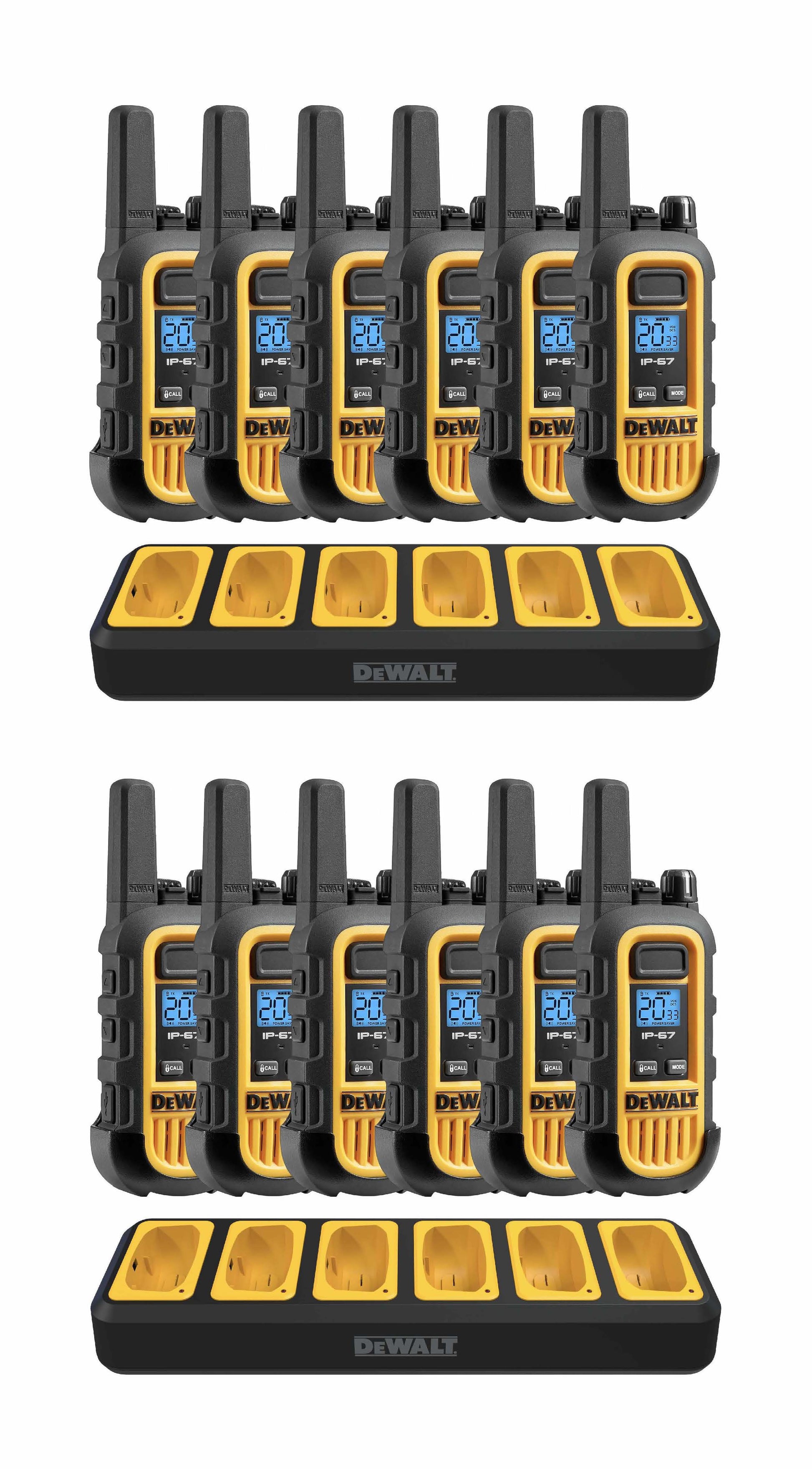 Dewalt Heavy Duty 12 DXFRS300 Radios with 2X 6 Port Chargers