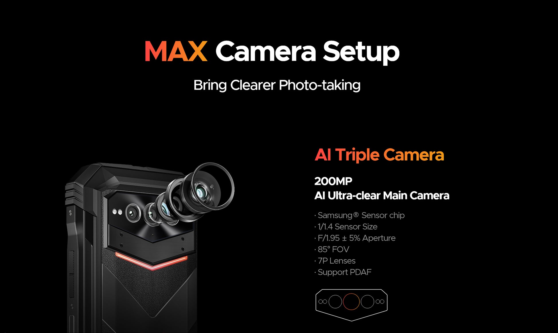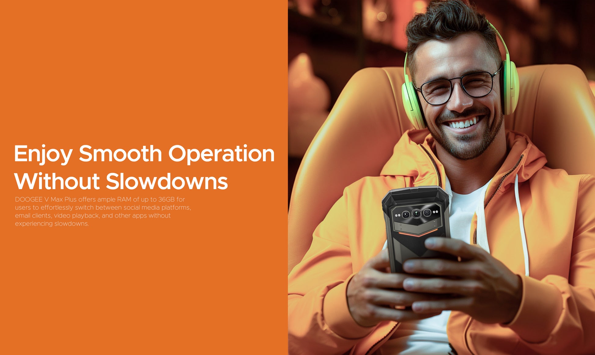 MAX TO POWER, PLUS TO EXPLORE - The Doogee V Max Plus is a rugged powerhouse built for endurance and performance. Boasting a colossal 22,000 mAh battery with 33 W fast charging, it delivers unparalleled stamina and even acts as a power bank via OTG. Under the hood, it runs Android 14 on a MediaTek Dimensity 7050 (6 nm) processor, paired with up to 36 GB RAM (16 GB + 20 GB Extended) and 512 GB storage—expandable to 2 TB. Capture stunning detail with a 200 MP AI main camera, 20 MP night-vision lens, and 8 MP wide/macro module. Featuring a 6.58? FHD+ 120 Hz IPS display, side-mounted fingerprint, NFC, Wi-Fi 6, and full rugged certifications (IP68/IP69K, MIL-STD-810H), it’s engineered for life off the beaten path.