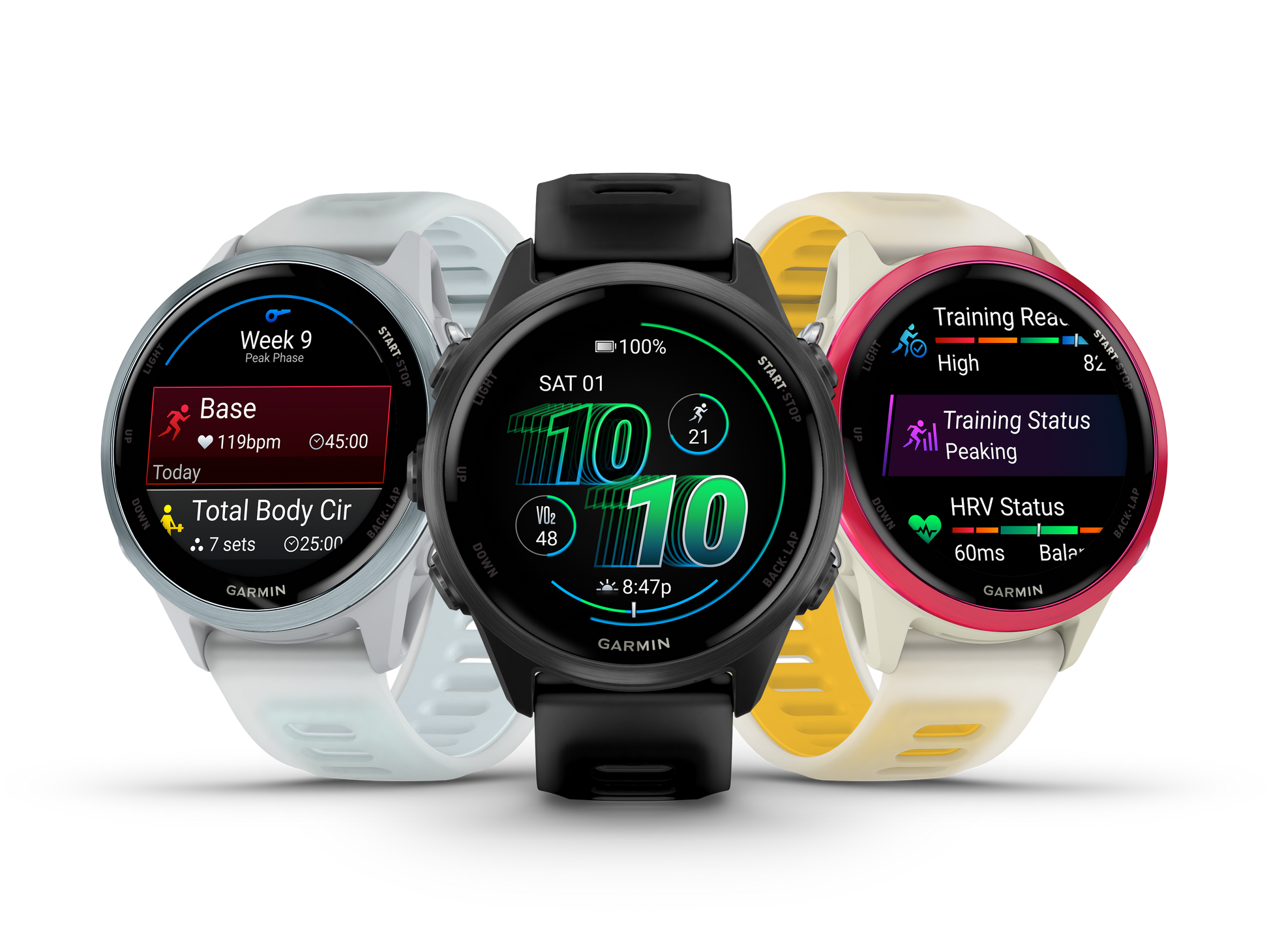 -TRAINING STATUS - Using indicators such as HRV status, recent exercise history and VO2 max, get insight into training effectiveness with training status — and know whether you’re training productively, peaking or strained.