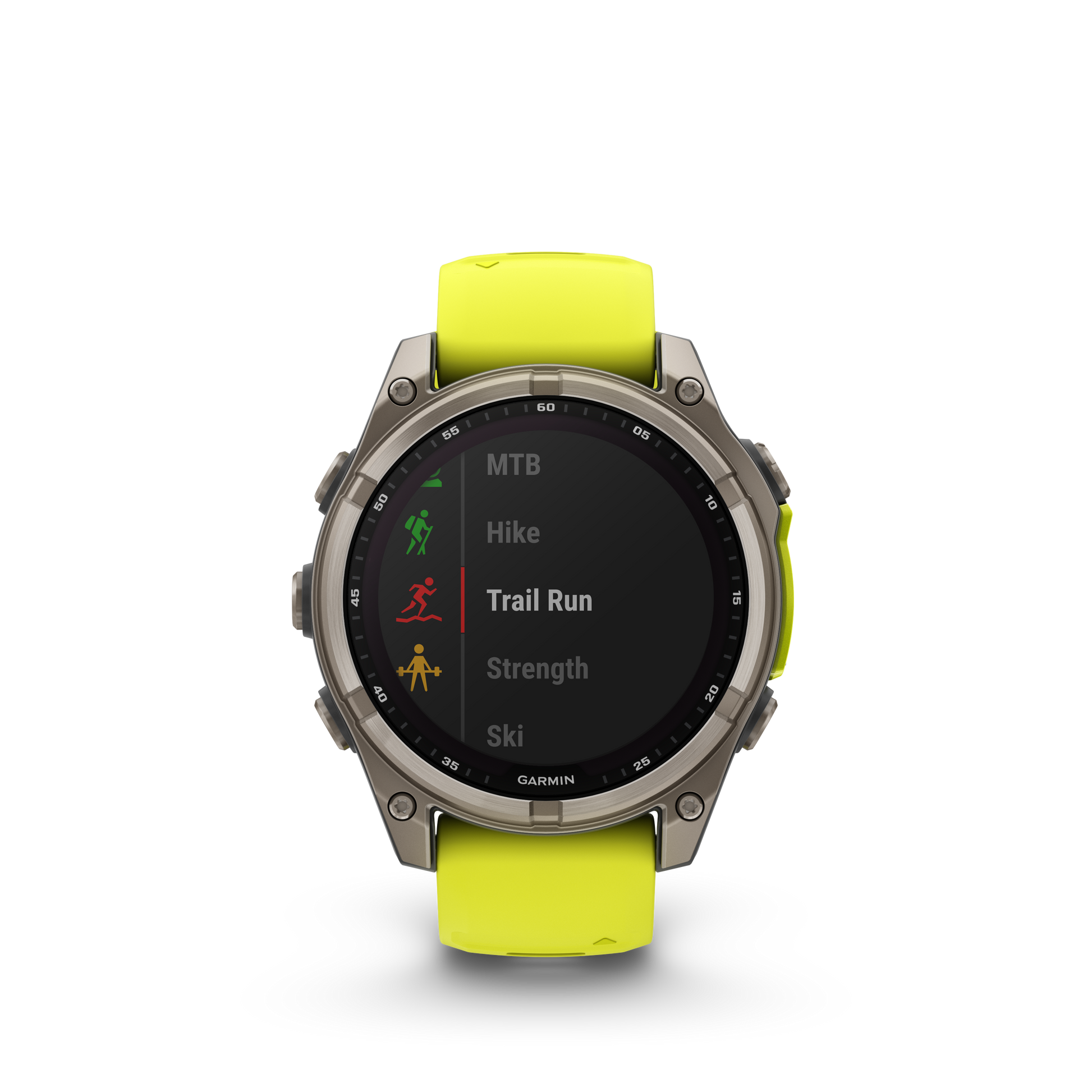 The f?nix® 8 multisport GPS smartwatch is built for serious athletes and outdoor adventurers who want to push beyond their limits. It features a 1.3” solar charged display with scratch-resistant sapphire lens, durable titanium bezel and powerful built-in LED flashlight for after-dark visibility. A built-in speaker and mic enable you to make and take calls from your wrist when your watch is paired to your smartphone. Power up your body’s performance, endurance and resistance to injury with targeted strength training plans and a full range of sport-specific workouts. Performance insights help manage your exertion and build stamina, while training readiness features show how much recovery time you need between workouts, based on 24/7 health and wellness monitoring of heart rate, respiration, stress, sleep and more (data presented is intended to be a close estimation of metrics tracked). Take to the trails with built-in ABC sensors and preloaded TopoActive maps. The dynamic round-trip routing feature helps simplify the planning of your runs or rides — letting you set your target distance and receive turn-by-turn directions that adjust to get you back to your start on schedule. Enjoy extended off-grid adventures with solar power providing up to 92 hours of battery life in GPS mode (assumes continuous use for entire period in 50,000 lux conditions). Plus, a 40-meter dive rating and leakproof metal buttons let you reach new depths of adventure. Additional features include music storage, Garmin Pay™ contactless payments (with a supported country and payment network), smart notifications (compatible smartphone required) and more.