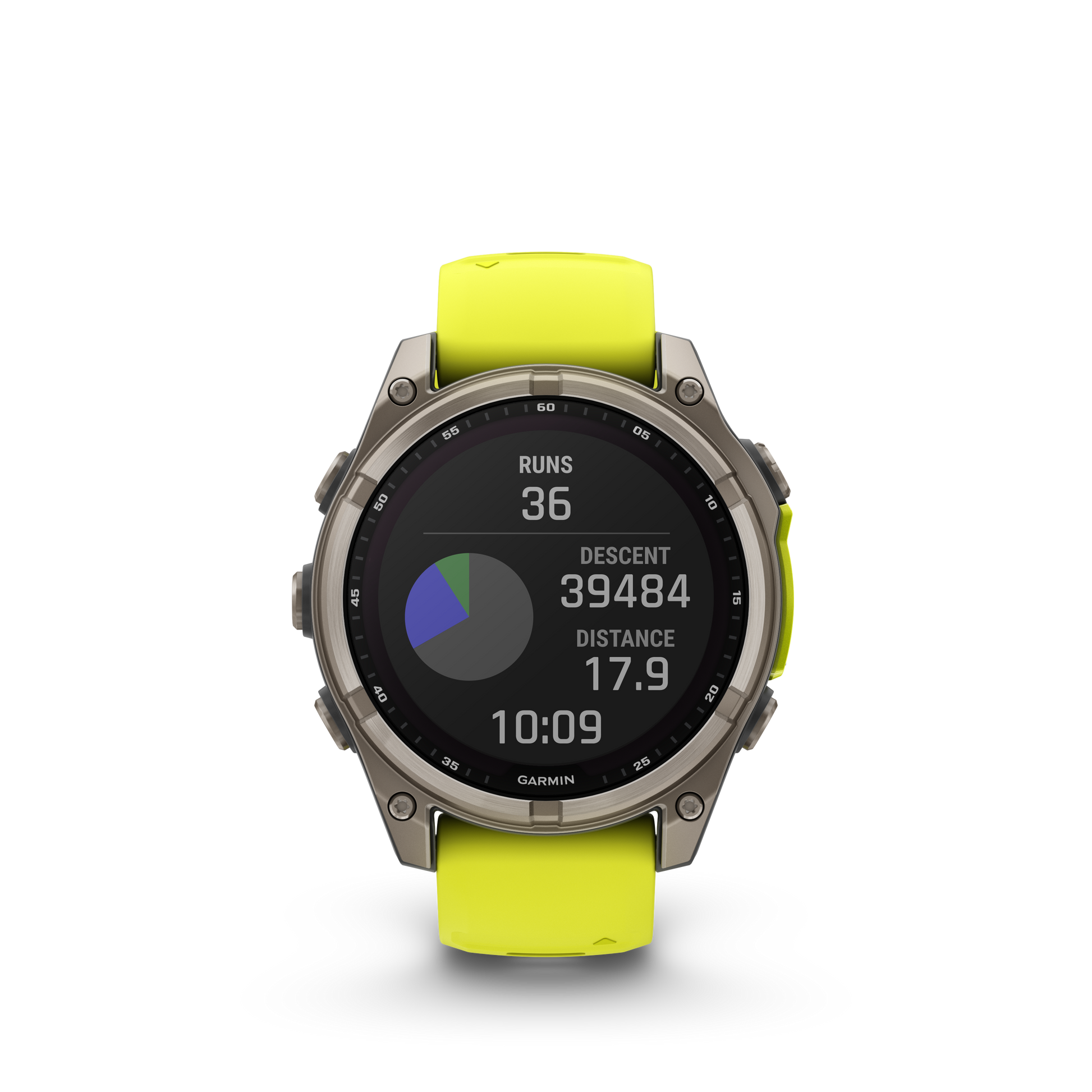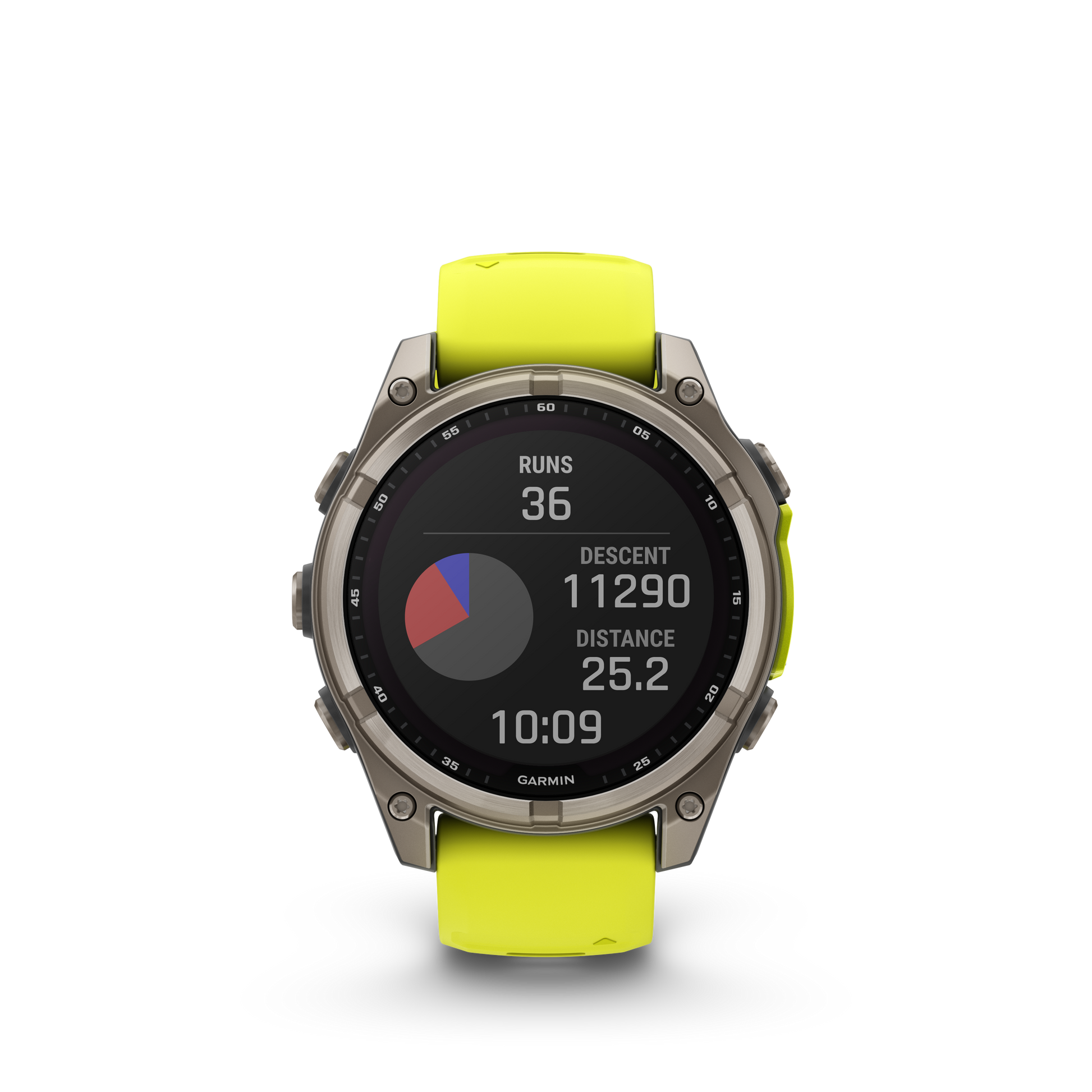 Garmin f?nix 8 – 47mm, Solar Sapphire, Titanium with Amp Yellow/Graphite Silicone Band