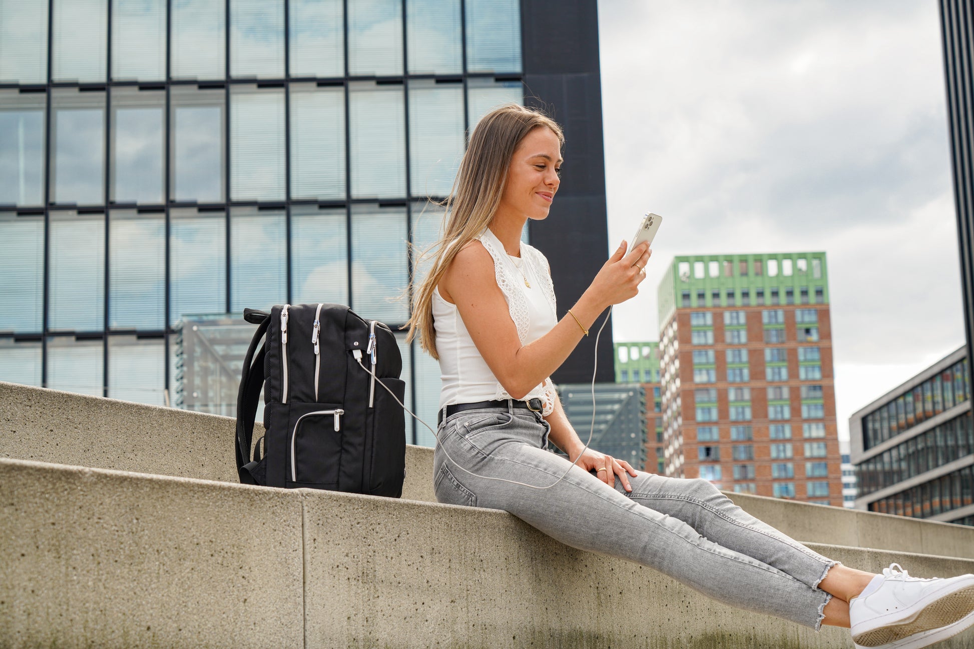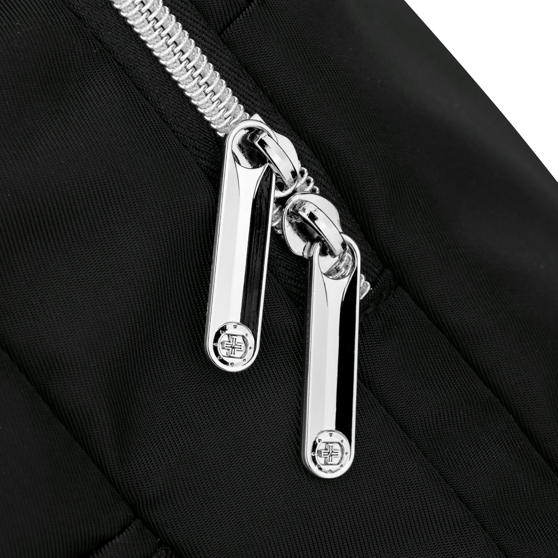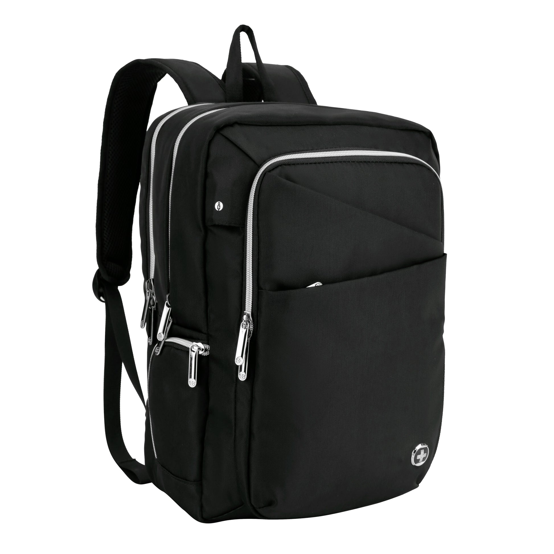 KATY ROSE is a stylish Black Laptop backpack with platium accents. The bag is perfect for students and professionals. Travel with peace of mind with a built in an integrated RFID protection compartment. Two-year limited warranty on non-electrical componets.