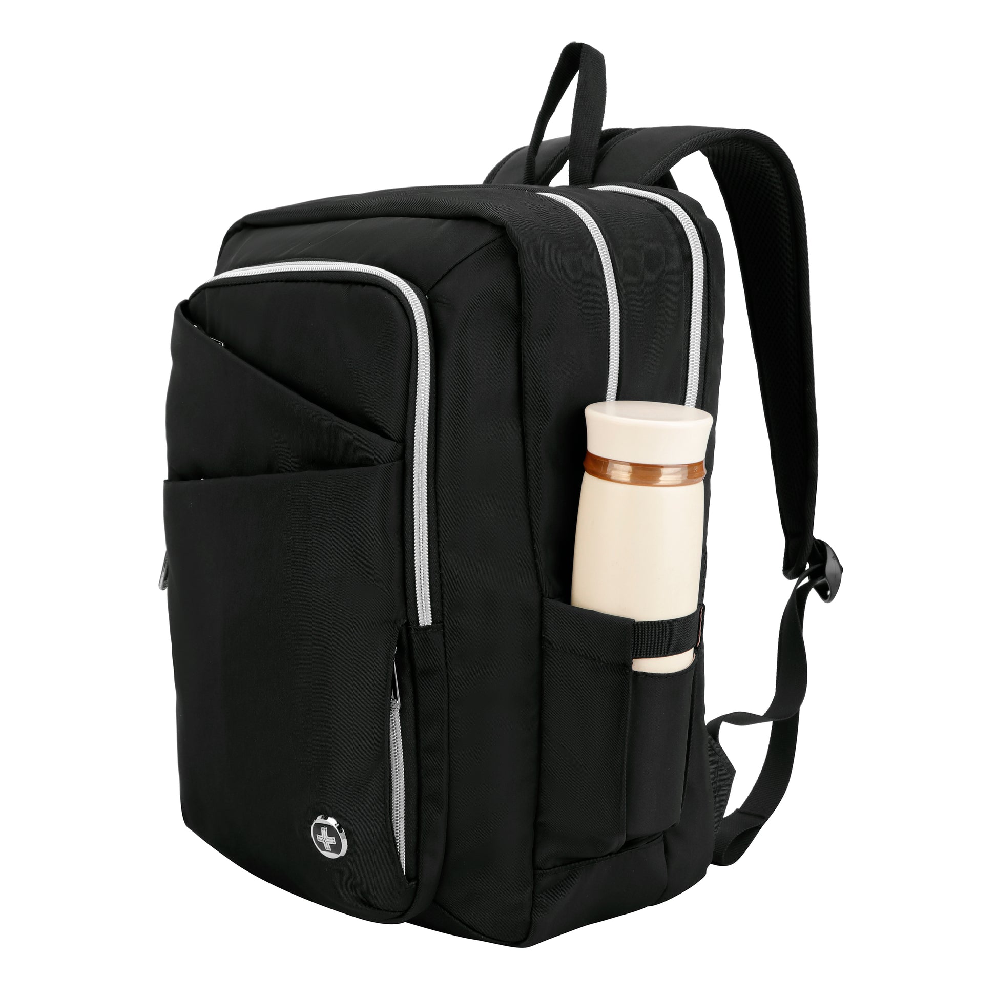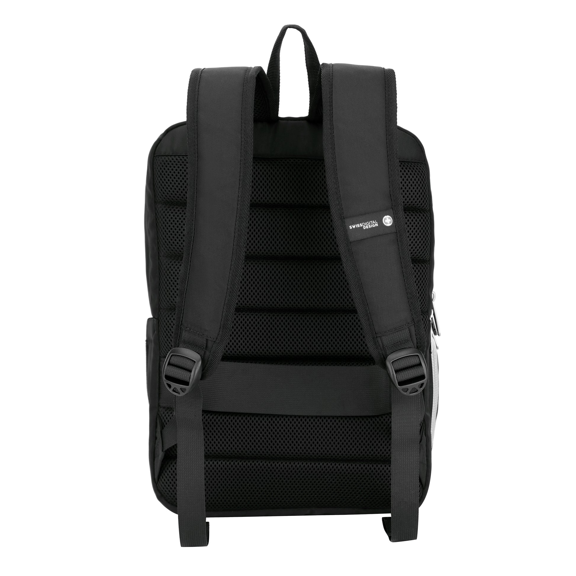 KATY ROSE Black Platinum Backpack with SDD Finder is an innovative black backpack with platinum accents. The bag includes SDD Hexagon Finder on the key clip, which officially works with the Apple Find My network and Android system. If you ever lose sight of your backpack, you can easily and anytime locate it with the Swissdigital Design App or Apple Find My App.