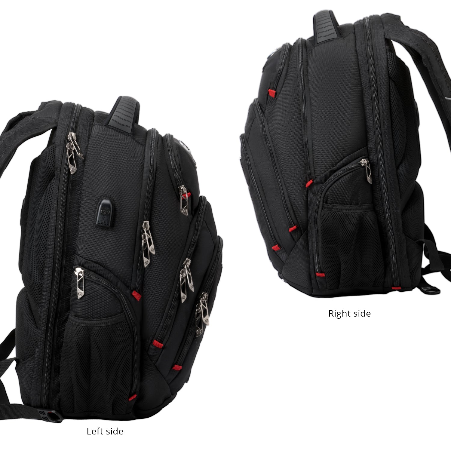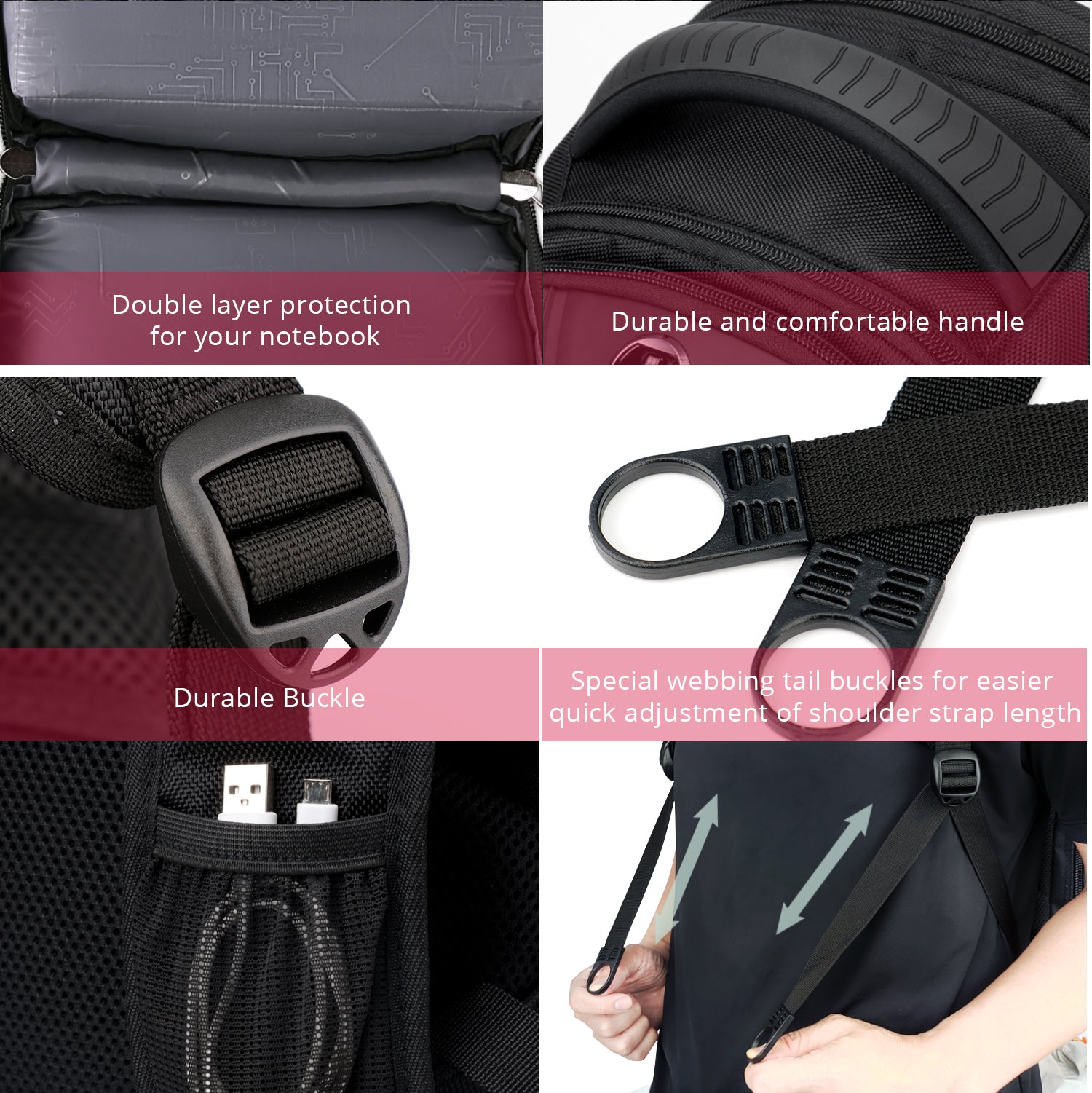 -Dedicated powerbank pocket, water bottle pocket, glasses case pocket, mouse pouch, key clip, multifunctional pockets, and breathable back panel of the backpack features mesh padding for comfortable air ventilation.