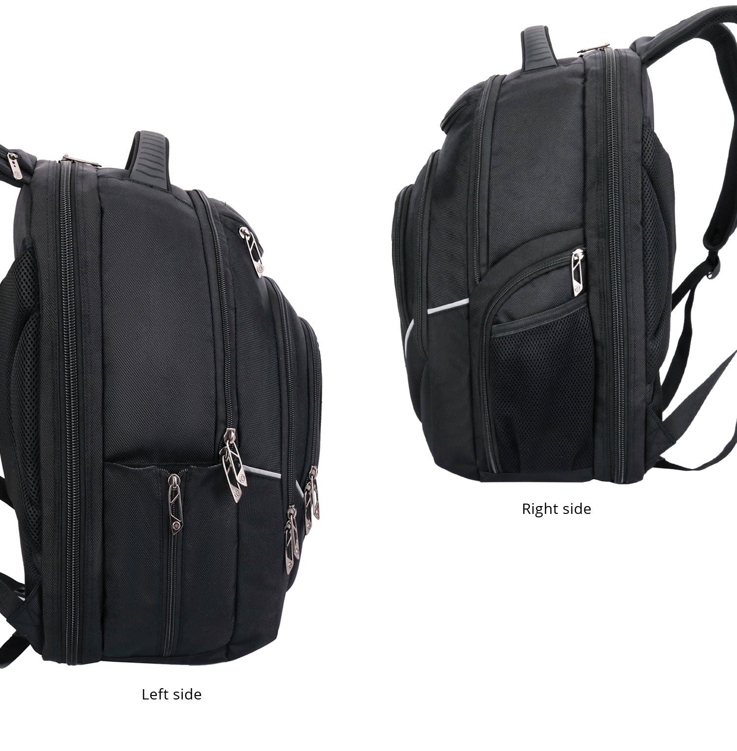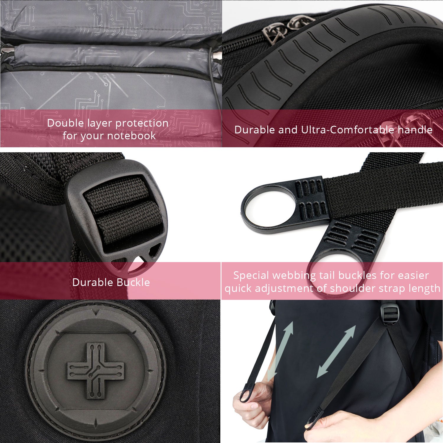 -Dedicated powerbank pocket, water bottle pocket, glasses case pocket, mouse pouch, key clip, multifunctional pockets, and breathable back panel of the backpack features mesh padding for comfortable air ventilation.