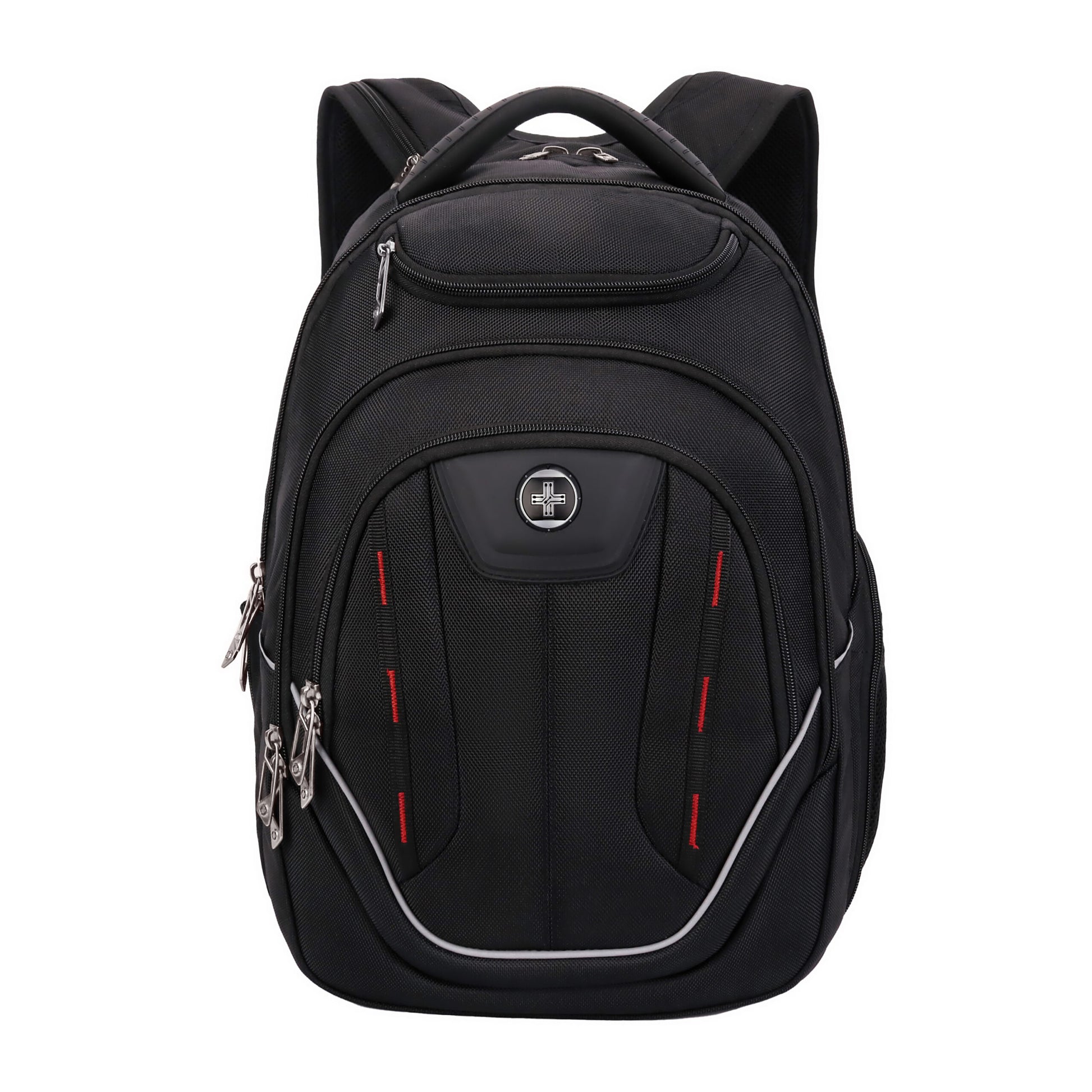 TERABYTE Black/Red Backpack with SDD Finder is a large black backpack with red accents. The bag is perfect for students and professionals, it offers an incredible amount of space to store and organize items. The bag includes SDD Hexagon Finder on the key clip, which officially works with the Apple Find My network and Android system. If you ever lose sight of your backpack, you can easily and anytime locate it with the Swissdigital Design App or Apple Find My App.