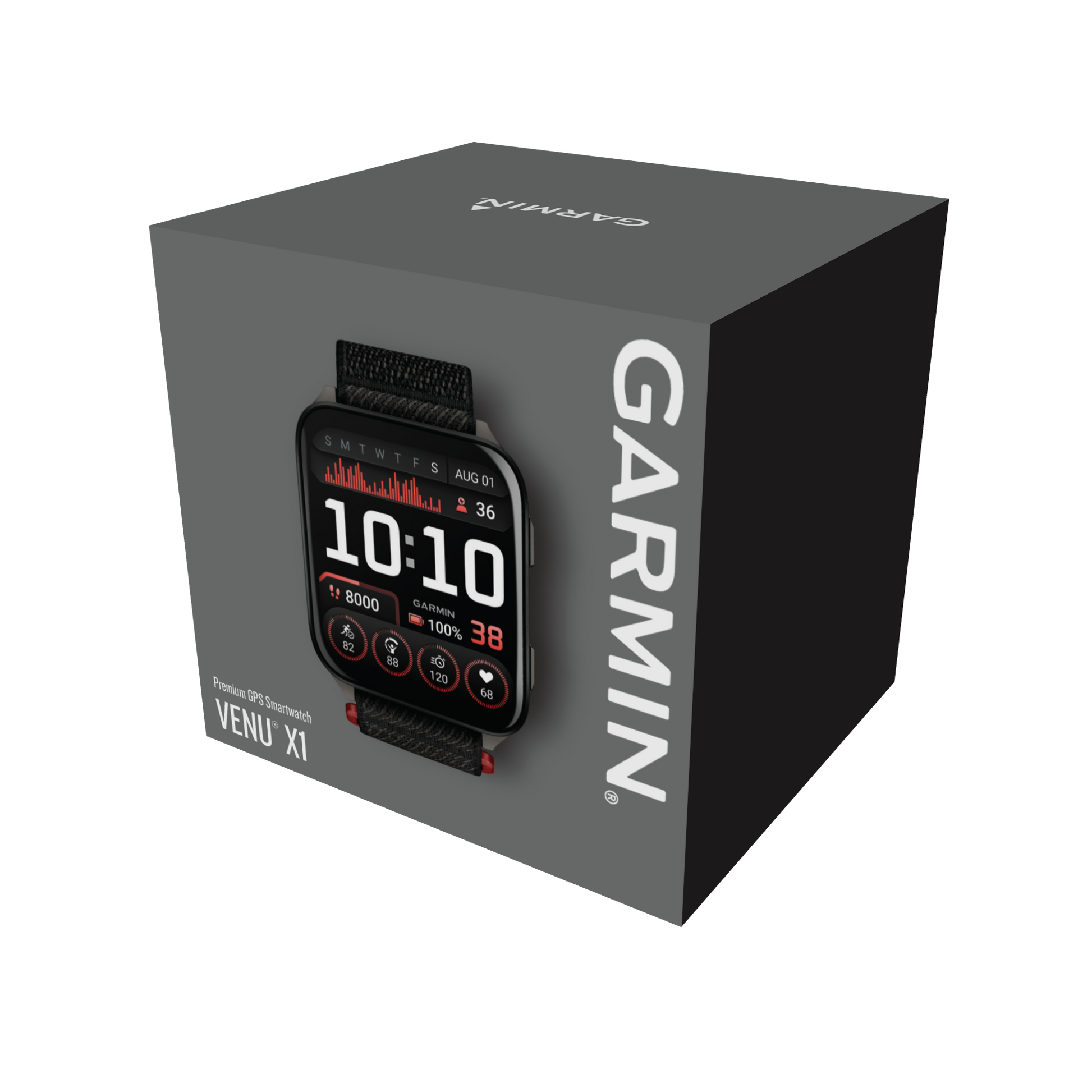 The Venu® X1 GPS smartwatch features our biggest display — 2” easy-to-read AMOLED — and our thinnest watch case measuring 8 mm. It also has a sapphire lens and bright LED flashlight. Wear it all day, every day, thanks to the sleek and lightweight design, up to 8 days of battery life in smartwatch mode and ComfortFit nylon band. Optimize your health with HRV status, advanced sleep monitoring and Body Battery™ energy monitoring. Track your passions with more than 100 preloaded sports apps, including running, golf and strength training. Train for an event, achieve a milestone, or improve your fitness with Garmin Coach training plans for running, cycling or strength. Train smarter and maximize your performance with the training readiness score, training status and endurance score, and be prepared for whatever the day brings. Stay connected and take calls from your wrist with a built-in speaker and microphone when your watch is paired to your smartphone. Onboard TopoActive maps and 43,000+ preloaded golf courses allow you to navigate on the trail, the city or the course.
